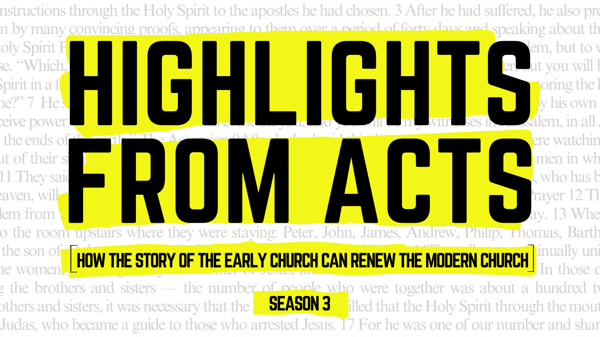 And, the book of the Acts is proof of that. In every generation of the church, people have rediscovered the story of the early church as it’s told in the book of Acts—and it has set the church on fire. In a cultural moment where the church is in decline, we want to read the book of Acts page by page and highlight moments that have the potential to renew the church in our time. We don’t just want to read stories from Acts, we want to live them. If that’s what you want and you’re just curious about faith, join us for Season 3 of Highlights from Acts.